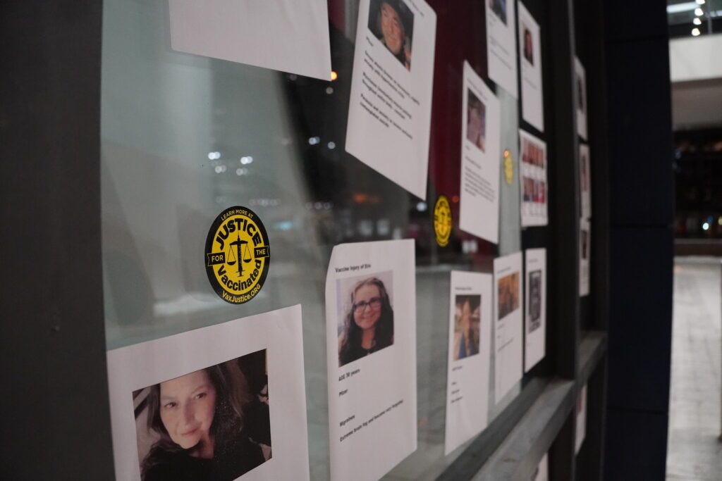 Seeking to bring attention to the injuries and deaths temporally related to Covid-19 "vaccines," the activists worked feverishly to get the profiles up. Security guards were present but did not intervene.